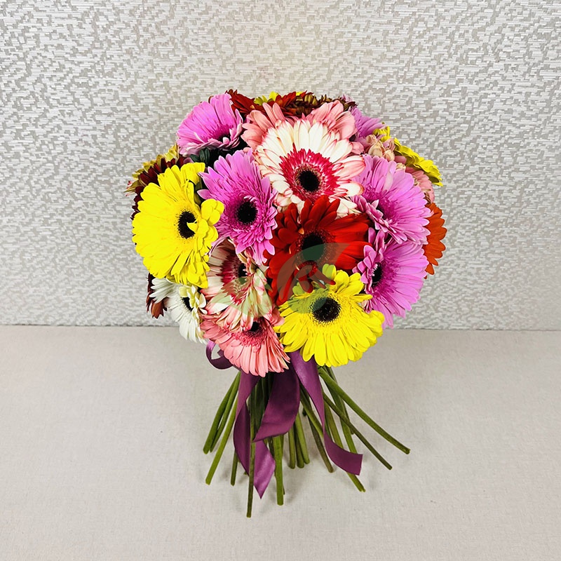 Огромный шикарный букет из 35 гербер разного цвета. Не нужно придумывать высокопарных речей. Этот букет выразит многообразие ваших чувств лучше всяких слов. Больше нет никакой недосказанности и скрытых чувств. С гербер в подарок начнётся ваша история любви!