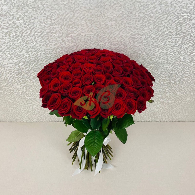 - Роза - 101 штука, цвет - красный, длина стебля - 60 см;