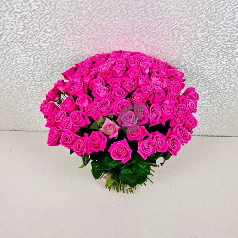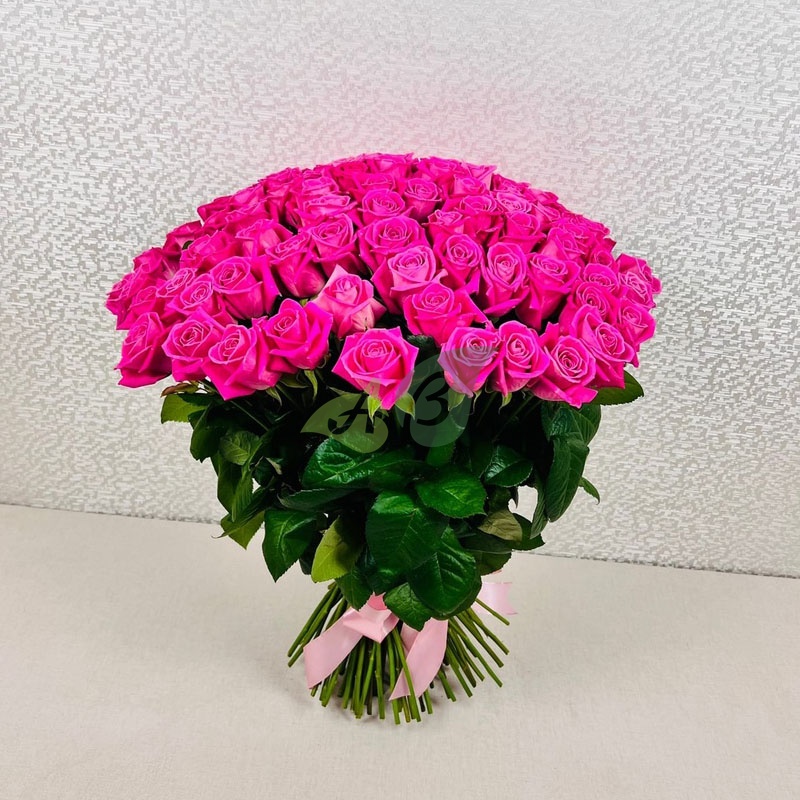 • Роза - 101 штука, цвет - розовый, длина стебля - 60 см;