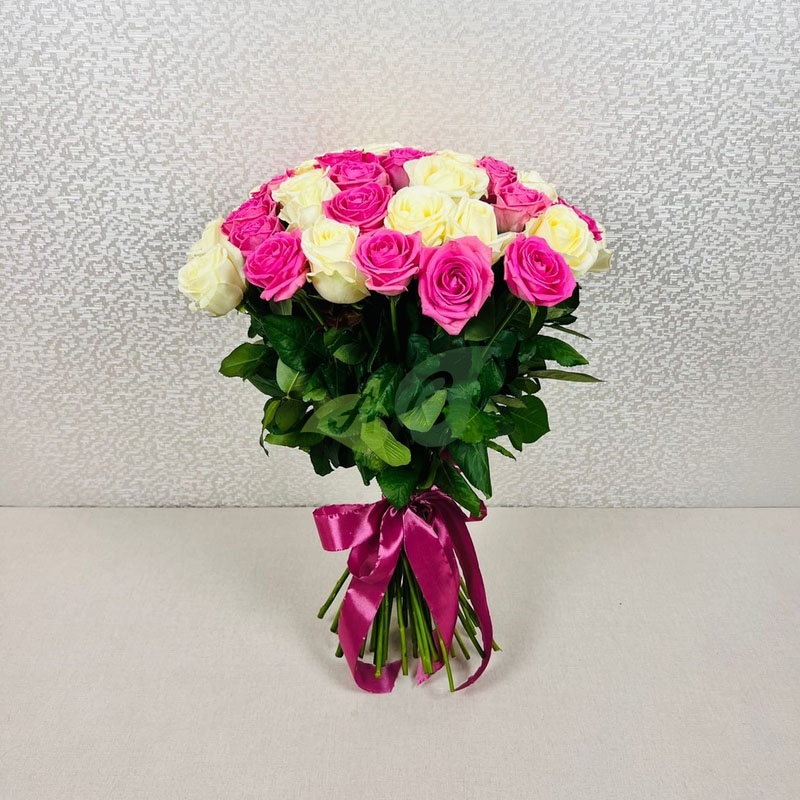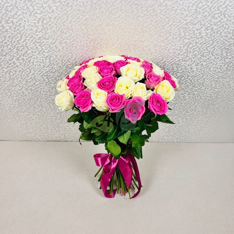 Закажите букет из 51 розовой и белой розы и доставка по Прокопьевску будет бесплатной.