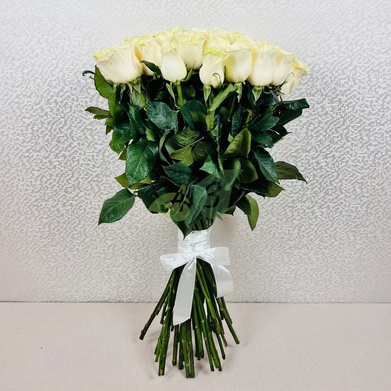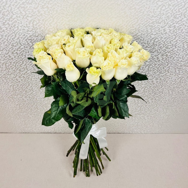 • Роза - 51 штука, цвет - белый, длина стебля - 70 см;