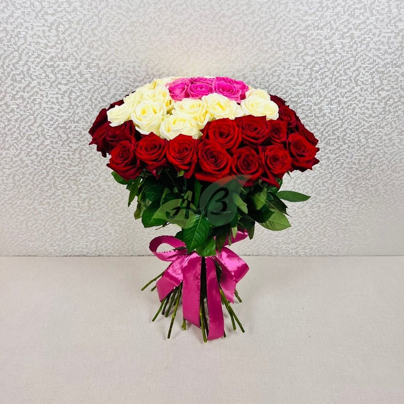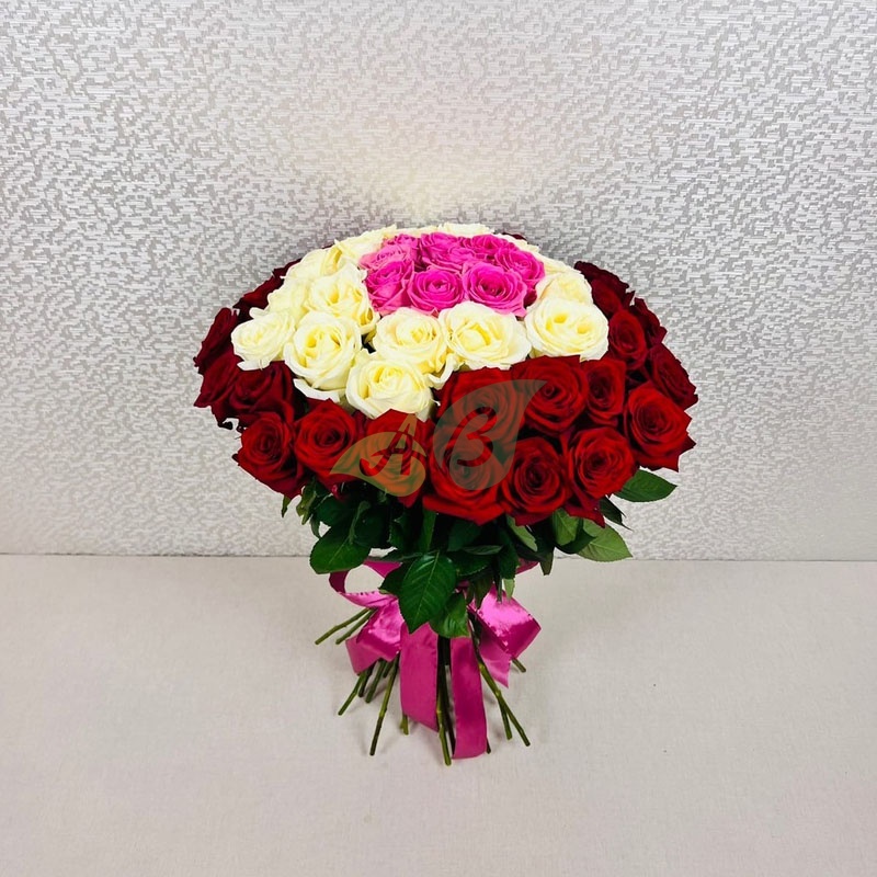 Букет "51 красная, белая и розовая роза" (60 см)