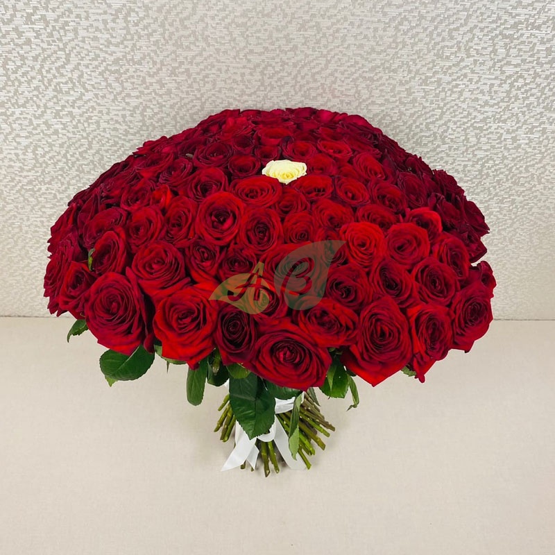 Композиция из 100 алых и 1 белой розы с доставкой скажет о любви больше, чем тысячи слов.