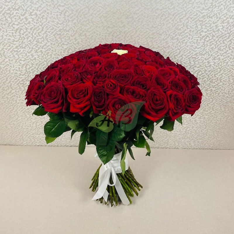 - Роза - 100 штук, цвет - красный, длина стебля - 60 см;