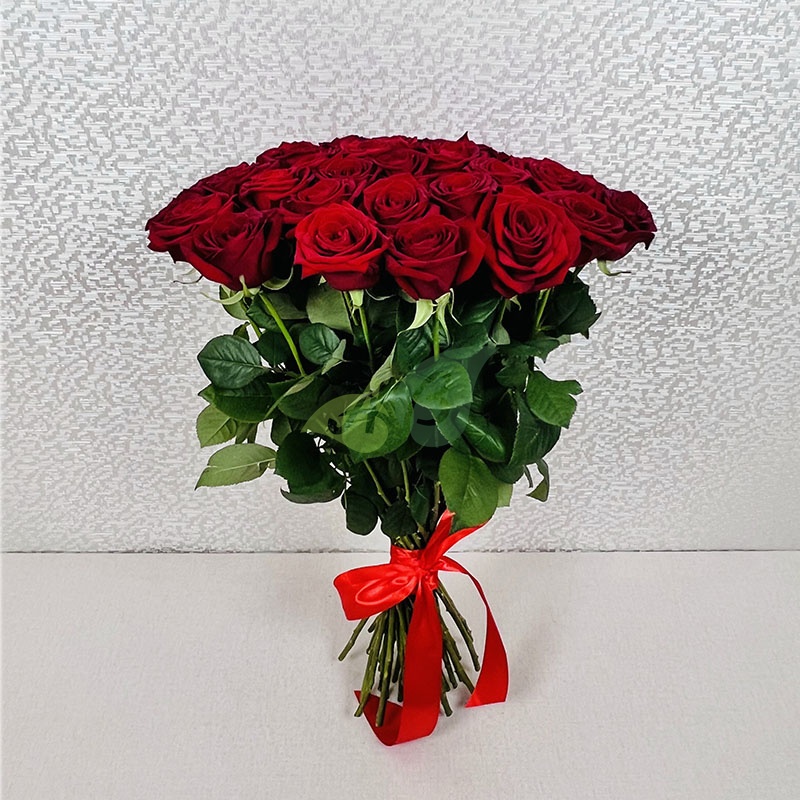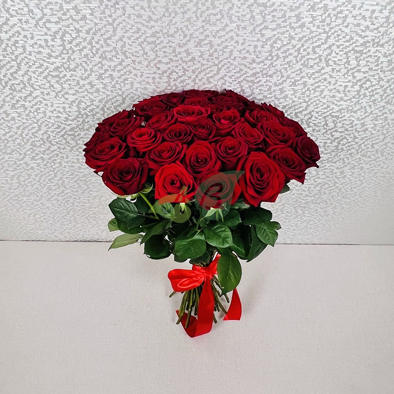 - Роза - 35 штук, цвет - красный, длина стебля - 60 см;