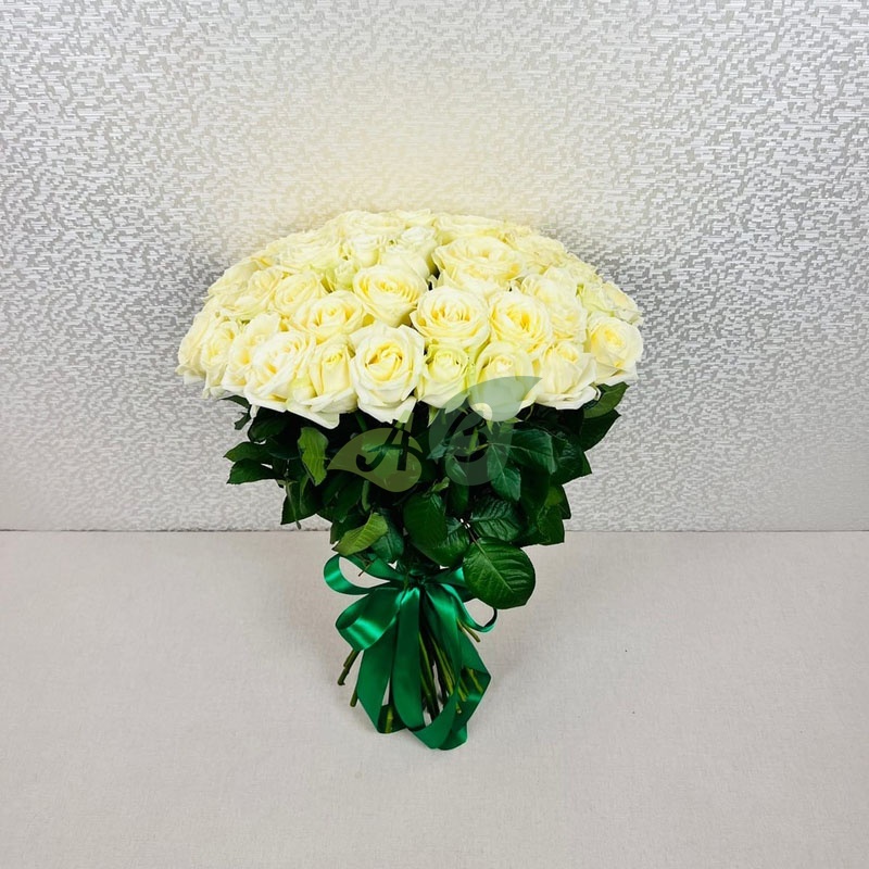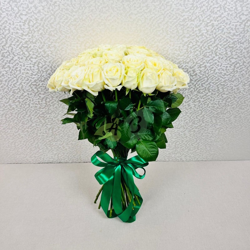 • Роза - 45 штук, цвет - белый, длина стебля - 60 см;