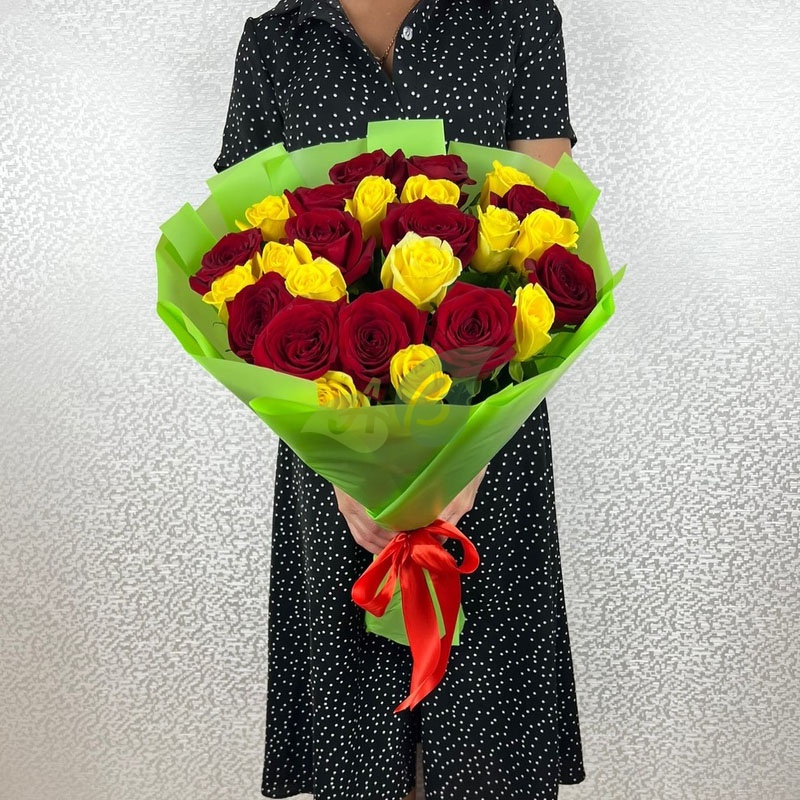 Красно-желтый микс из роз – это сказка о лете, которую так просто заказать в подарок на День рождения или в подарок любимой маме. Не забудьте дополнить такой букет запиской или красивой открыткой, чтобы сделать праздник еще теплее и радостней.