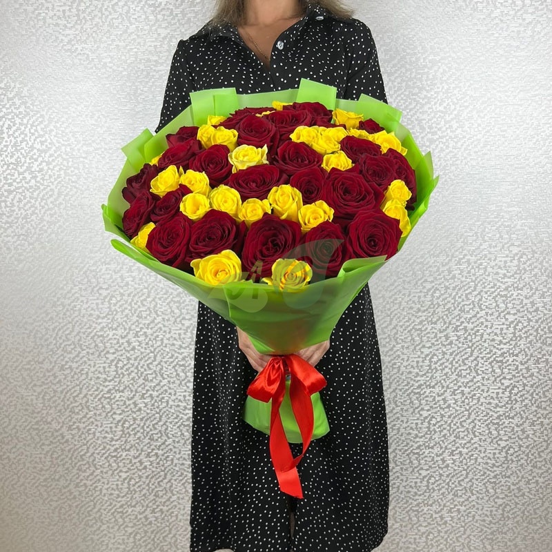 Букет "Красные и желтые розы" - 60 см