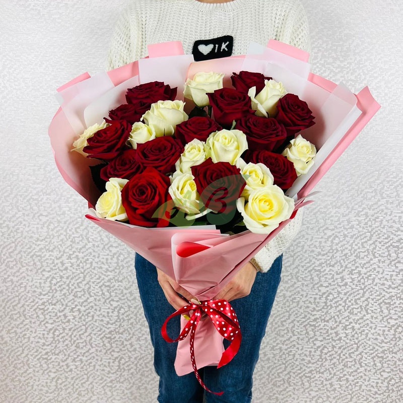 Белые и красные розы – отличный букет в подарок к любому празднику. Такой букет из роз прекрасно подойдет женщине, аромат этих цветов наполнит ваш дом яркими эмоциями и хорошим настроением на весь день.