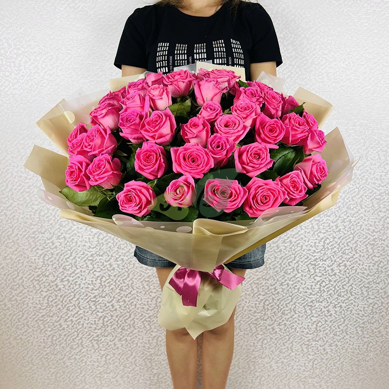 Розовые розы – удивительные цветы. Букет из благородных малиновых или нежно-лиловых роз станет уместным подарком для вашей девушки и в день её Рождения, и по случаю признания в любви. Такой букет поможет получить ее прощение после размолвки.