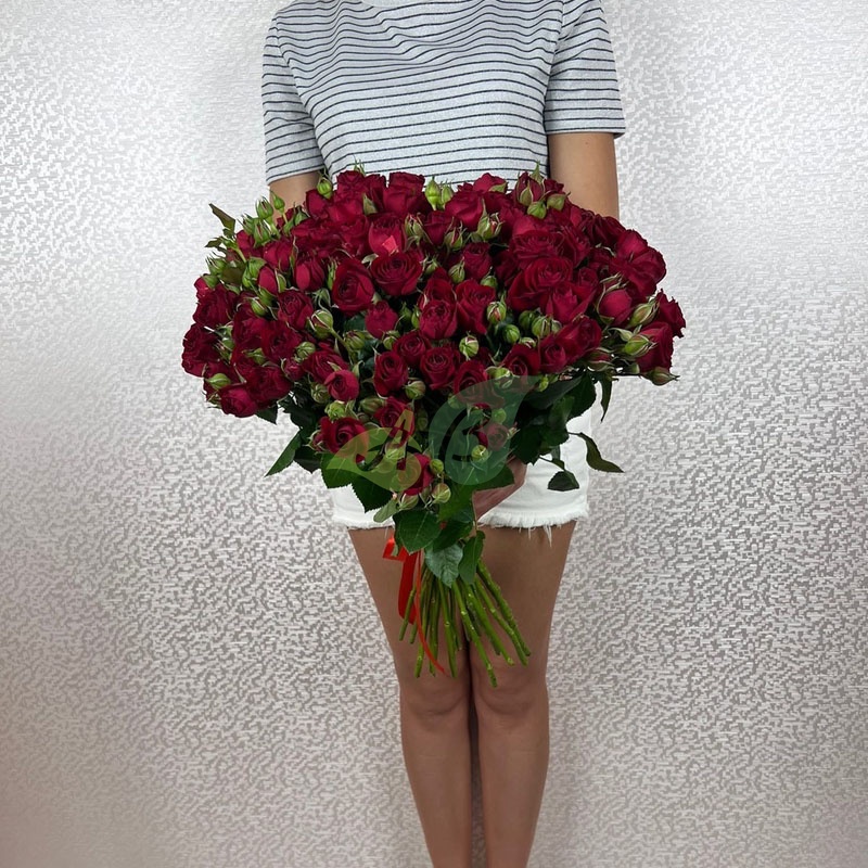 Даже 9 веток кустовой розы создают ощущение большого букета. А композиция из 101 ветки кажется и вовсе огромной, а стоит при этом недорого.