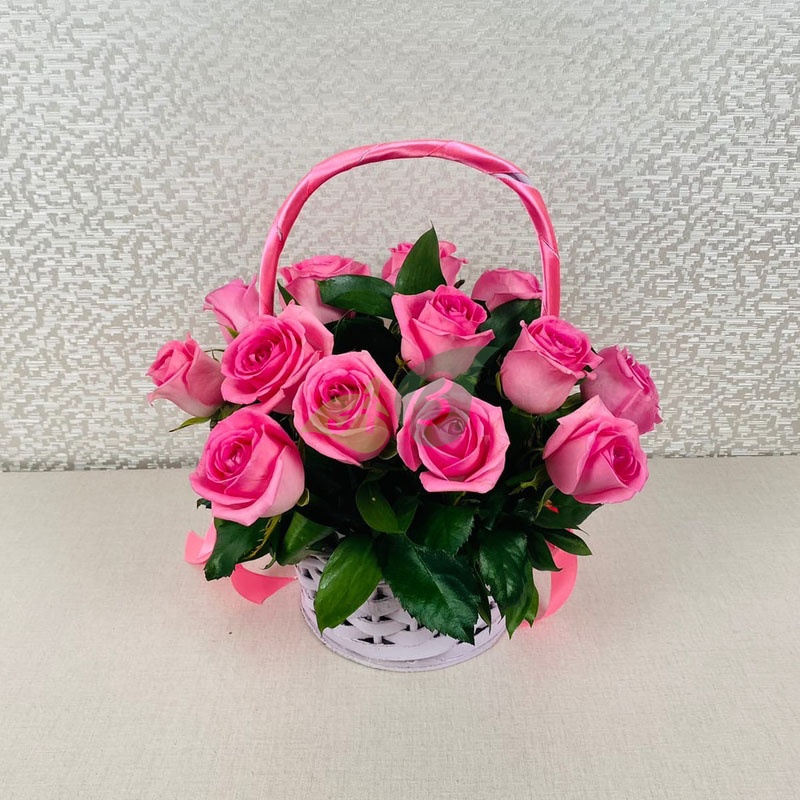 - Роза - 15 штук, цвет - розовый;
