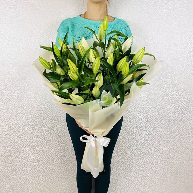 Скромная композиция из 3 лилий или роскошная из 31 цветка – какой букет заказать, решать вам. Мы же гарантируем, что цветы будут свежими, доставка от 3.000 рублей будет бесплатной в пределах Прокопьевска будут стоить всего 300 рублей.