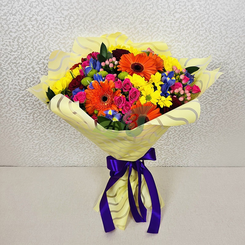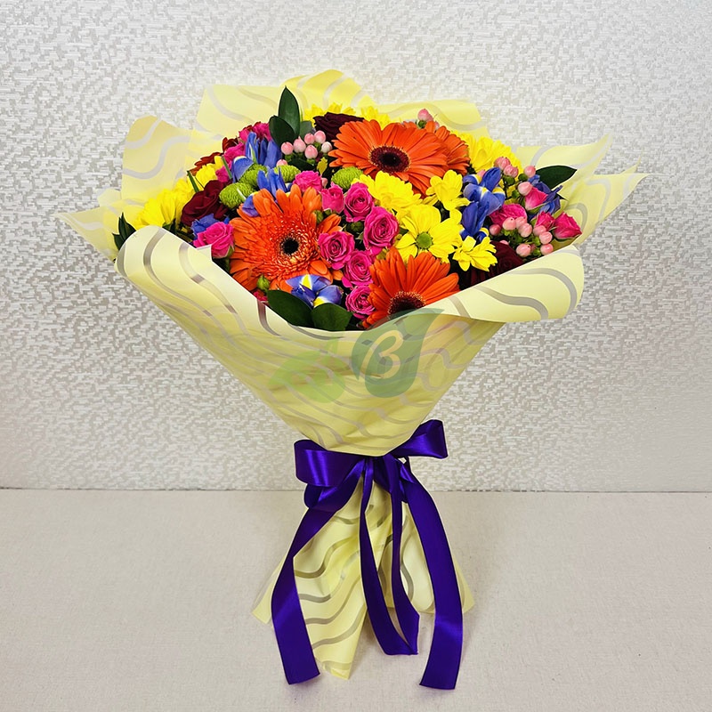 Этот букет из разных живых цветов можно дарить всем: и привередливой красавице, и строгой начальнице, и милой маме, и заботливой бабушке. Перед ним невозможно устоять. Но главное, что он не требует дополнений в виде подарка. Ведь этот букет и сам по себе шикарный подарок.