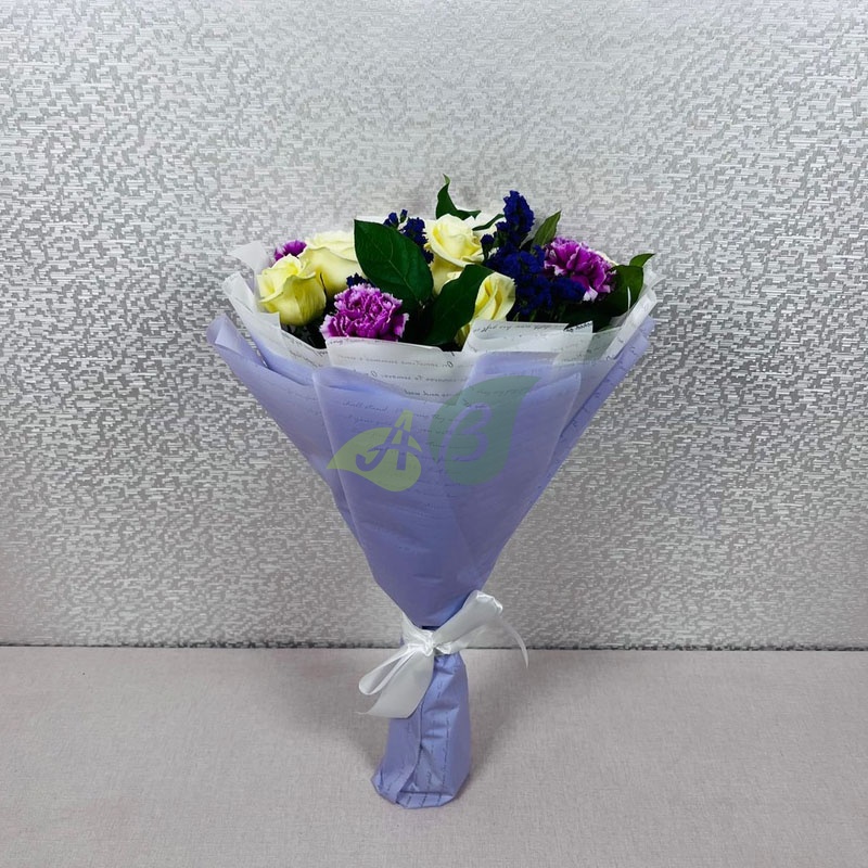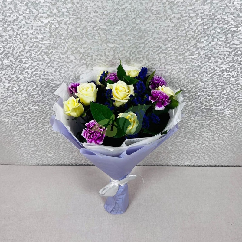 Нежные кремовые розы, сиреневые гвоздики и фиолетовую статицу можно купить для любимой жены. Напомните ей о том, как сильно вы ее любите, как она вам дорога.