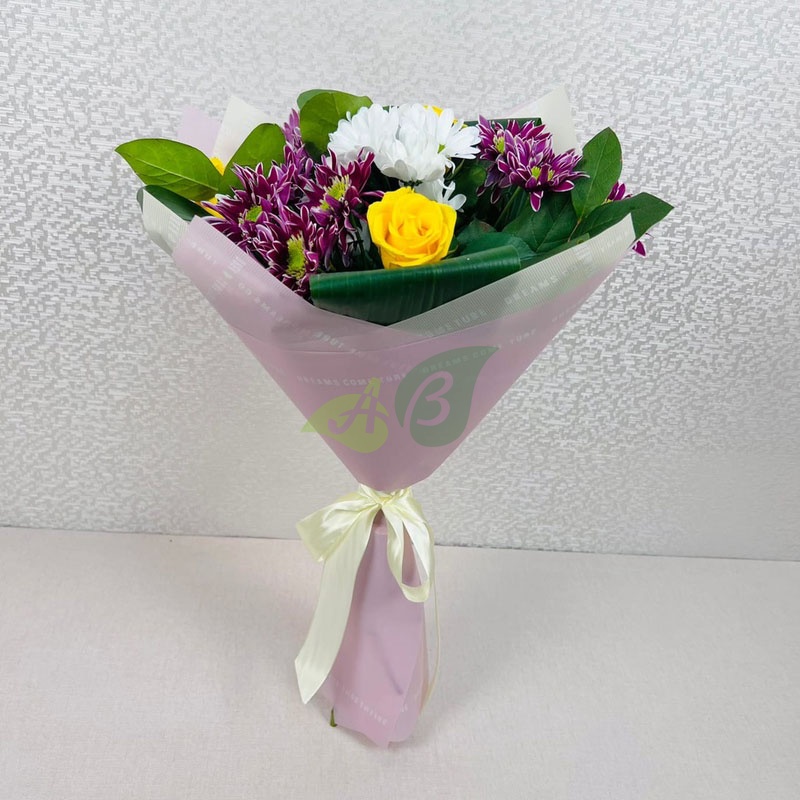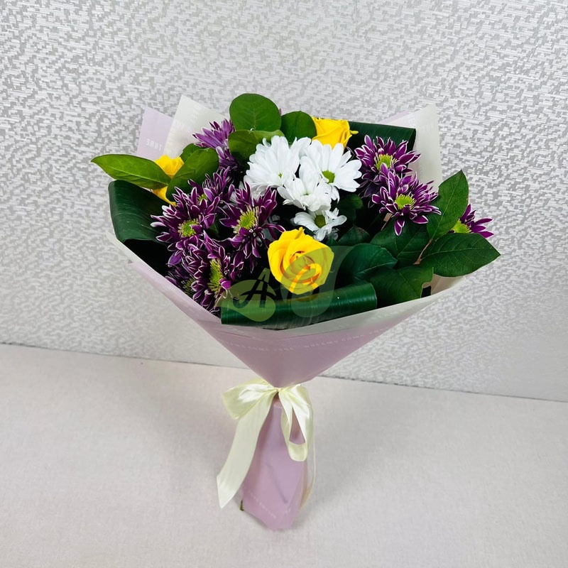 Состав и характеристики букета из роз и хризантем "Мозайка":