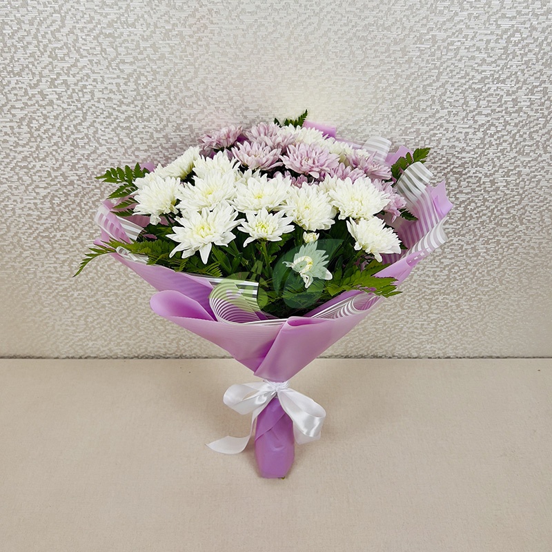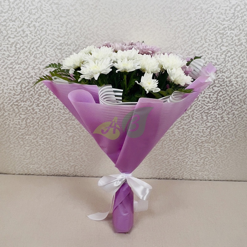 • Хризантема кустовая - 7 штук, цвет - белый, сиреневый;