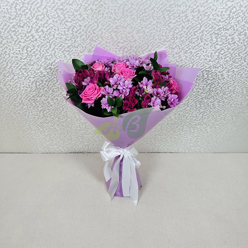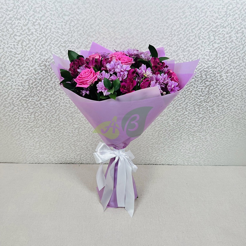 “Спелая вишня” – это невероятно красочный букет, который включает в себя розовые розы, нежно-сиреневую хризантему и фиолетовые альстромерии. Мы создали эту композицию, чтобы вы могли не думать, какие цветы заказать на 14 февраля. Она расскажет лучше слов о пылких чувствах и внесет яркие краски в холодный зимний день.